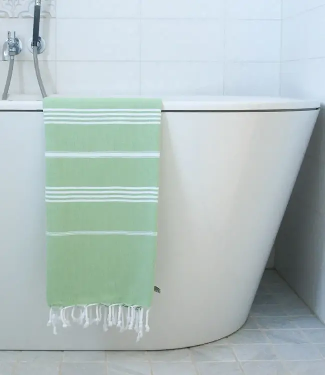 Deze Ottomania hamamdoek heeft een afmeting van 170x100cm (medium) en is verkrijgbaar in twee varianten: pistache/wit en wit/pistache. Het zal je niet verbazen dat dit model van Ottomania een van onze best seller hamamdoeken is. Niet in de laatste plaats omdat deze hamamdoek verkrijgbaar is in vier super handige maten: klein 100x50cm - medium 170x100cm - XL 210x100cm - tweepersoons 220x160cm.