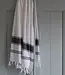 Heerlijk zachte, ietwat dikkere Ottomania hamamdoek in de kleur zwart met witte strepen. Geweven in honingraat en afgewerkt met kwastfranjes aan weerszijden. Een hamamdoek die veel gebruikt wordt in de sauna. Als handdoek om je mee af te drogen of als badlaken om op te liggen of om je heen te slaan. Deze doek is ook verkrijgbaar in wit met zwarte strepen.