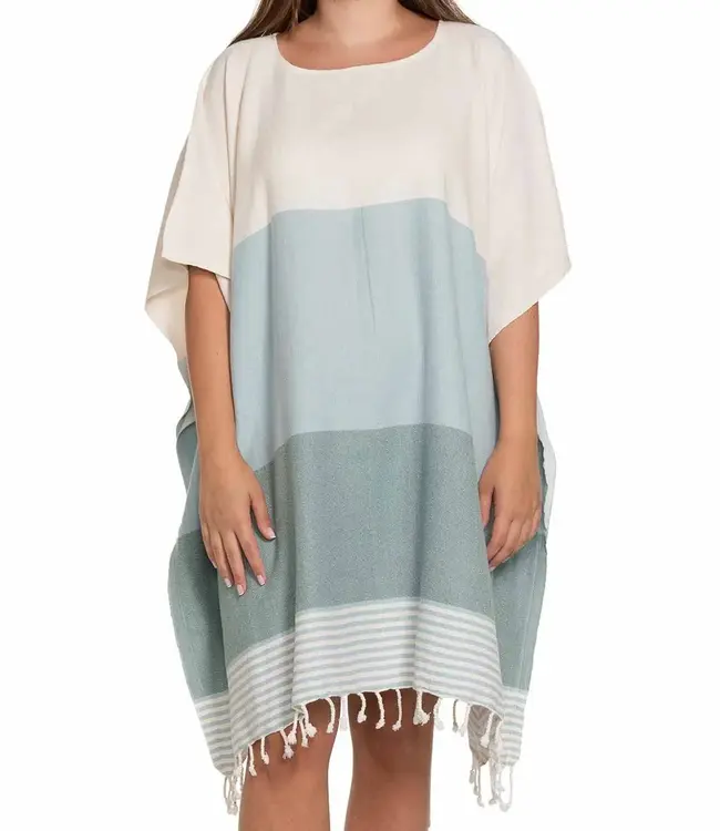 Deze sauna tuniek voor dames in light blue / almond green heeft een zachte, stijlvolle uitstraling. De combinatie van lichtblauw en amandelgroen oogt subtiel en rustig, zonder uitgesproken te zijn. Een kleurstelling die mooi past bij een ontspannen saunadag.