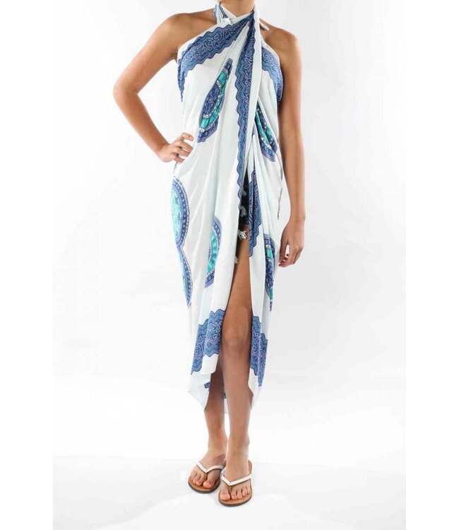 Deze strand pareo van Call it Fouta! is er eentje met een hoge WOW! factor. Het soepele materiaal laat je vrouwelijke vormen prachtig uitkomen. Het dessin is werkelijk in het oog springend. Het zomerse blauw afgewerkt pailletten laat je shinen.