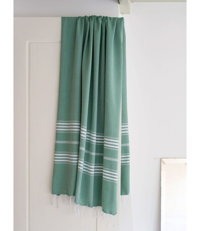 Een groene hamamdoek straalt rust en een connectie met de natuur uit. De smaragdgroene tint geeft daarnaast een luxe uitstraling, perfect voor sauna- en strandliefhebbers.